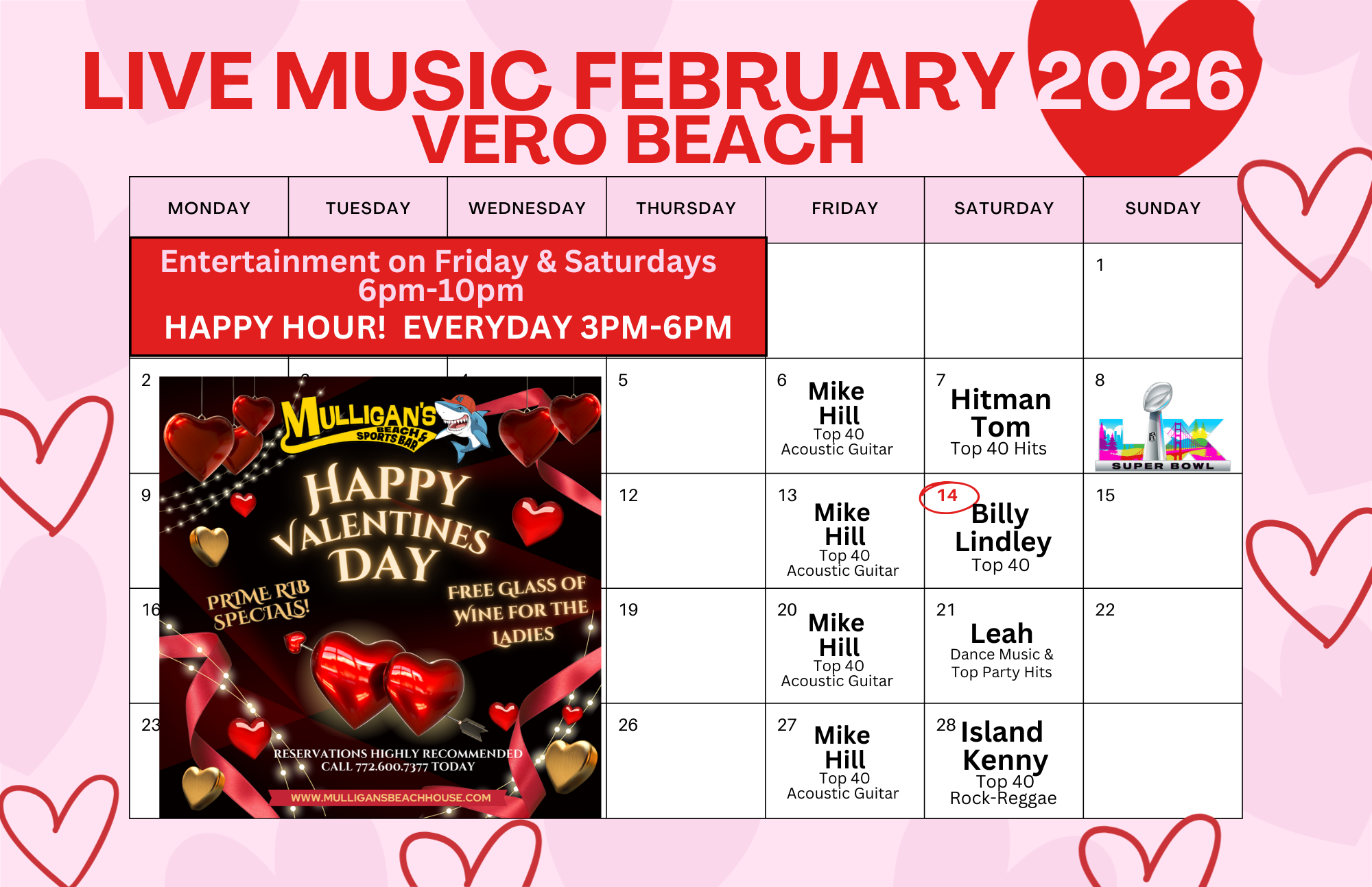 Want to throw a party? Look no further because we offer great package deals with a beach-front atmosphere that is hard to beat. We have it all here at Mulligan’s, so get the family together and come on down and enjoy everything we have to offer!